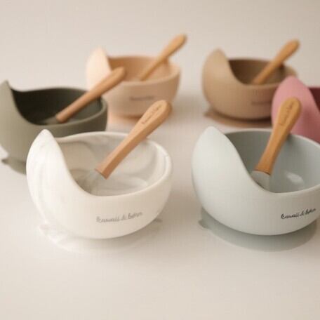 赤ちゃんに優しいシリコン素材のボウル・スプーンセット